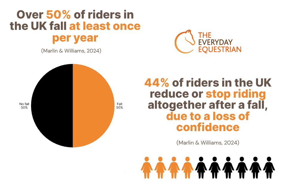 In a recent UK rider survey, more than half of riders reported a fall in the past year, and many admit they reduce or stop riding altogether afterwards (Marlin & Williams, 2024). Yet it doesn’t have to end that way — there is a way back.